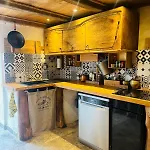 A Porri városi ingatlan magába foglal egy konyhát mikrohullámú sütővel, hűtővel és konyhai edényekkel.